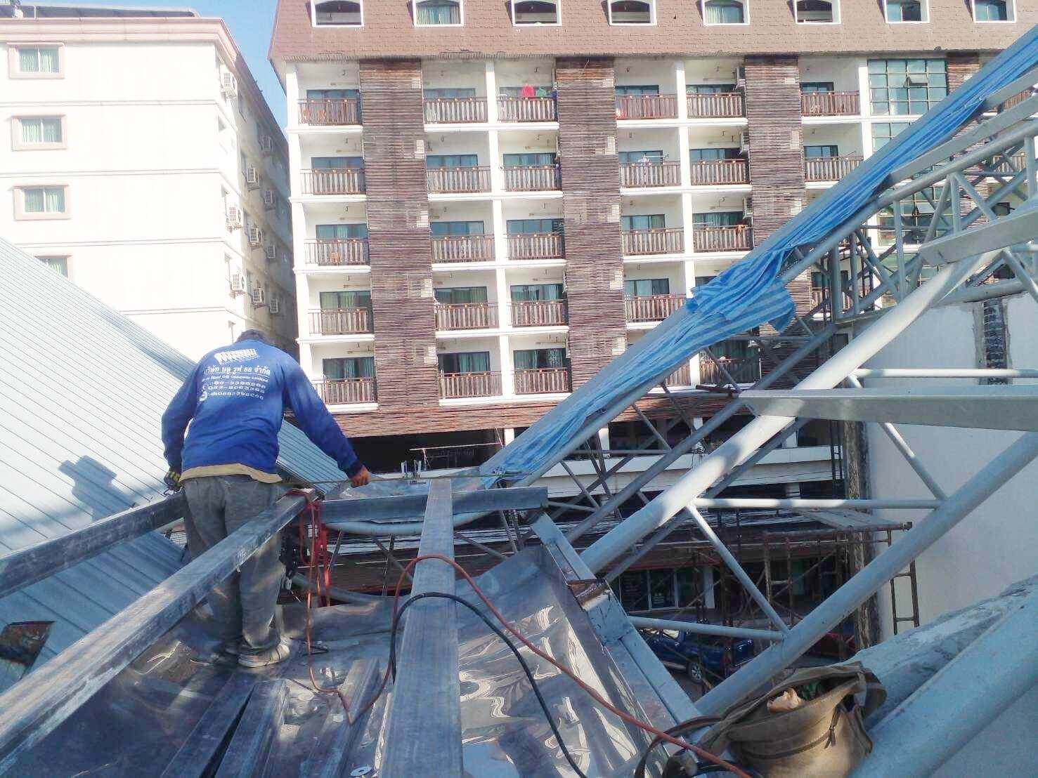 รับติดตั้งหลังคาเมทัลชีท ร้านอาหาร hey day ข้าง ม.กรุงเทพ รังสิต